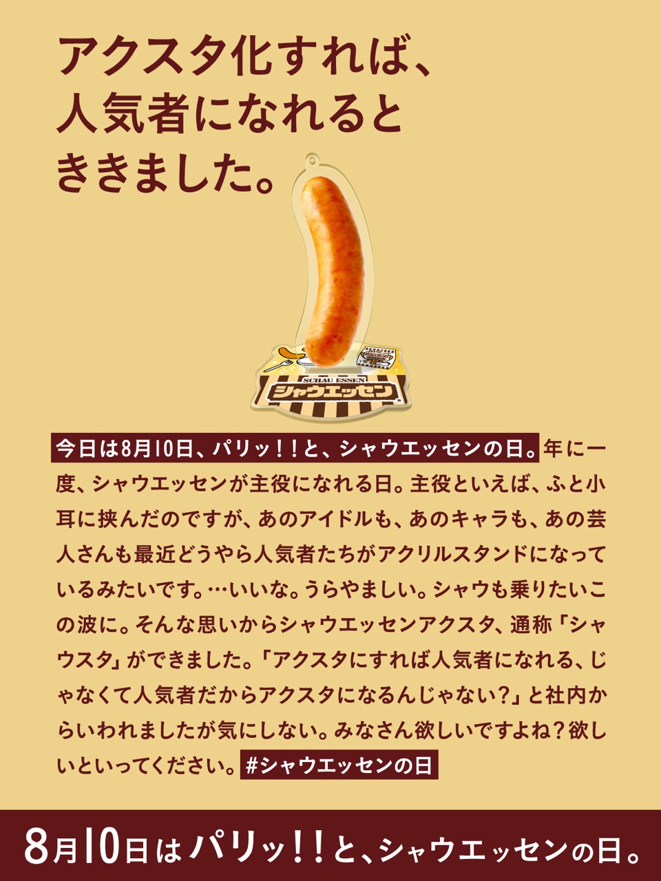 引用元: ・【悲報】シャウエッセンのアクスタ、想像以上にアレ。マジで想像以上にアレに似てる