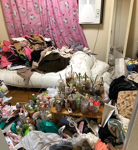 ちょっと前にもこんな感じの汚部屋で煙草の吸殻満載になってるカップラーメンかなんかの容器を放置してる女の配信者の画像?見掛けたな
